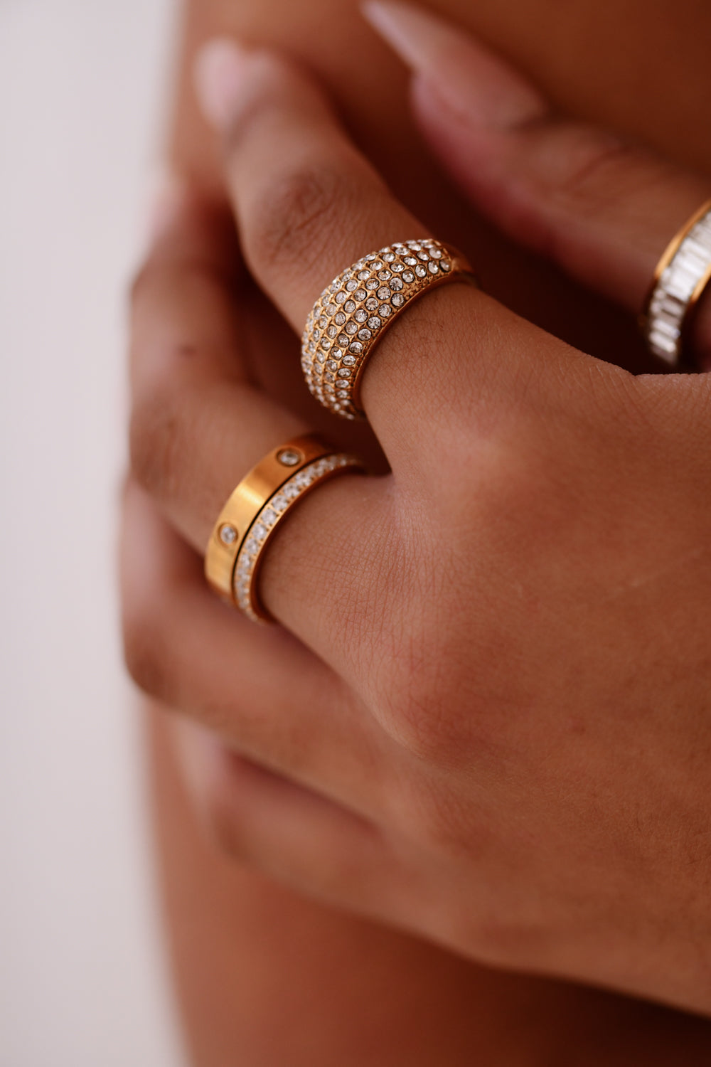 Introducing the Queen and Co. Magnum Ring – a bold statement piece that embodies strength and sophistication. Crafted with precision, this ring features a chunky design with sleek, interconnected links that create a striking visual impact.