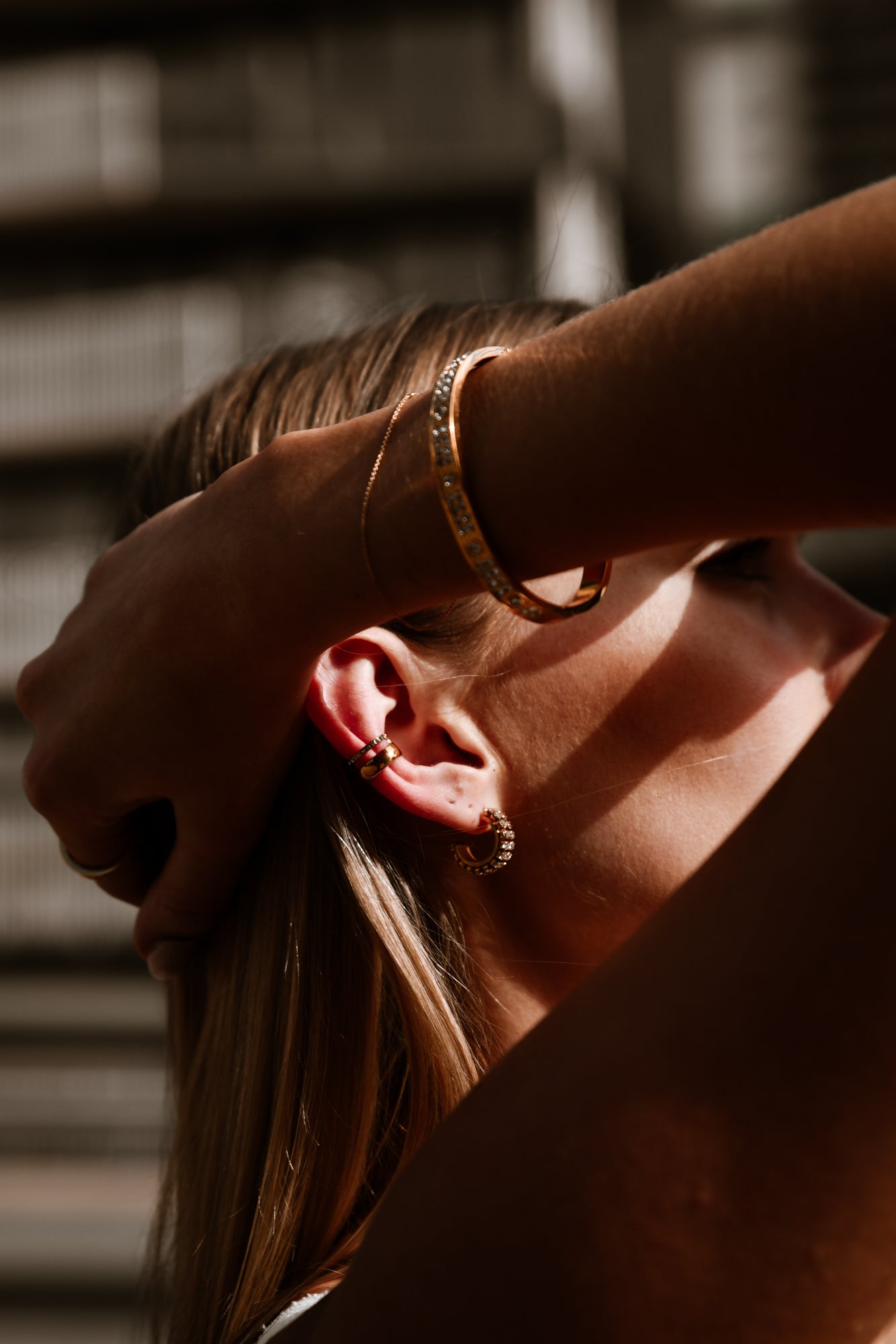 The Magnum Diamond Bracelet is the epitome of luxury, featuring a sleek gold-plated band adorned with brilliant pavé-set diamonds. With its delicate yet striking design, this bangle is a statement of refinement and sophistication.
