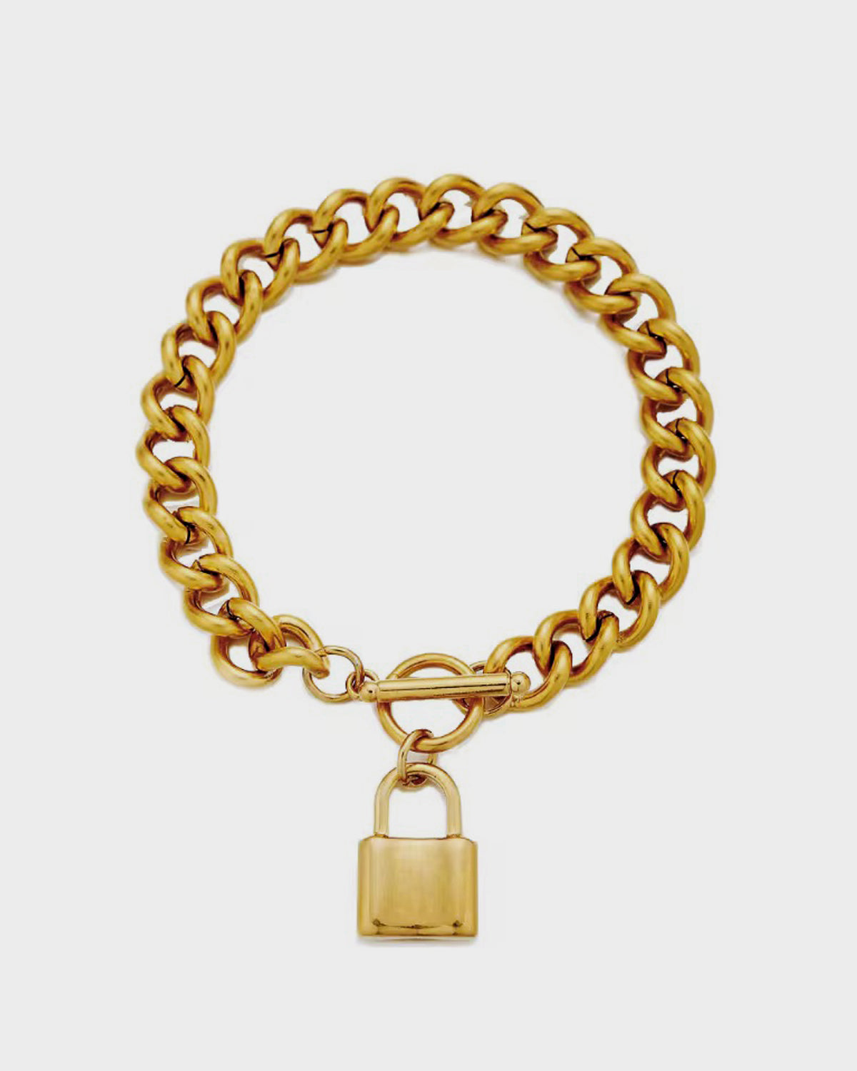Lock in your style with the audacious elegance of the Padlock Linked Bracelet from Queen & Co.