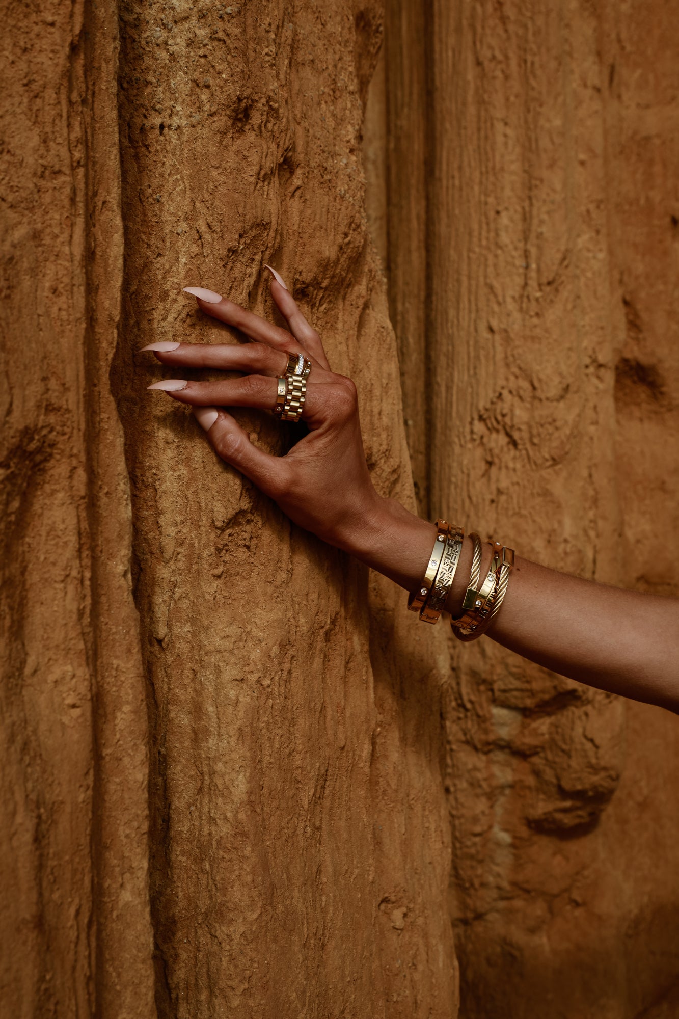 Having beautifully manicured hands is not enough until you add the 18K Gold Soho Layering Set. This perfect blend from Queen and Collection combines the contrasting styles of the Soho and Magnum Bracelets for a curated, fashionable look.