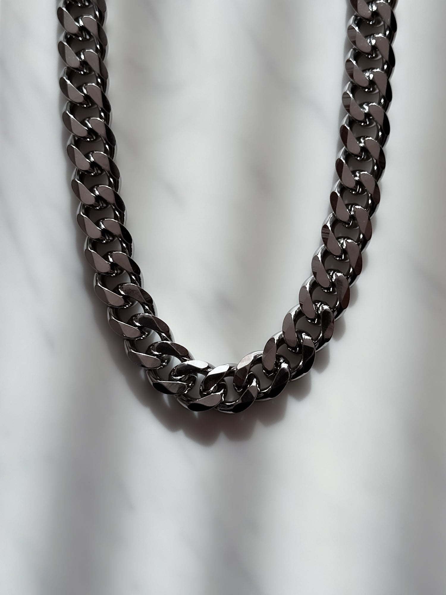 Elevate your everyday look with the Flame Necklace in Silver, a statement piece designed for the modern man. Featuring a bold Cuban link design with a high-polish silver finish, this necklace exudes strength, style, and timeless confidence. Perfect for layering or wearing solo, it complements both streetwear and formal looks effortlessly. Crafted from premium stainless steel, it’s tarnish-resistant, waterproof, and made to last.