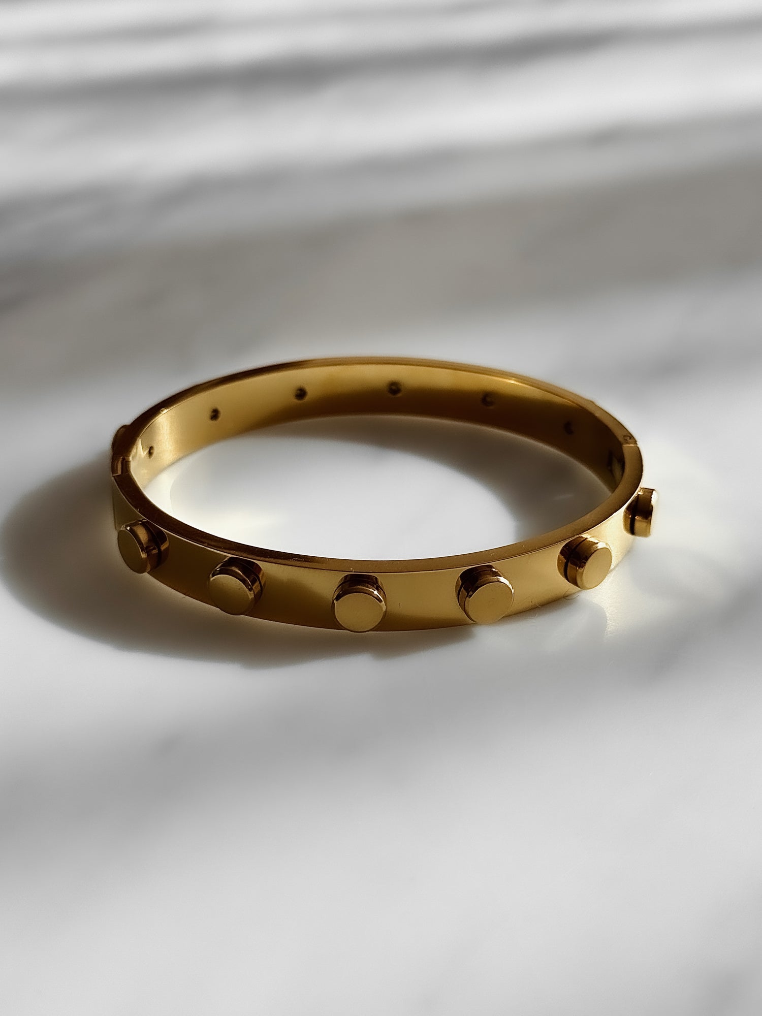 The Sync Bracelet Gold is more than an accessory — it’s a declaration. Featuring a sleek, high-polish gold finish and industrial-style rivet detailing, this bold cuff-style bracelet embodies balance, strength, and modern masculinity.