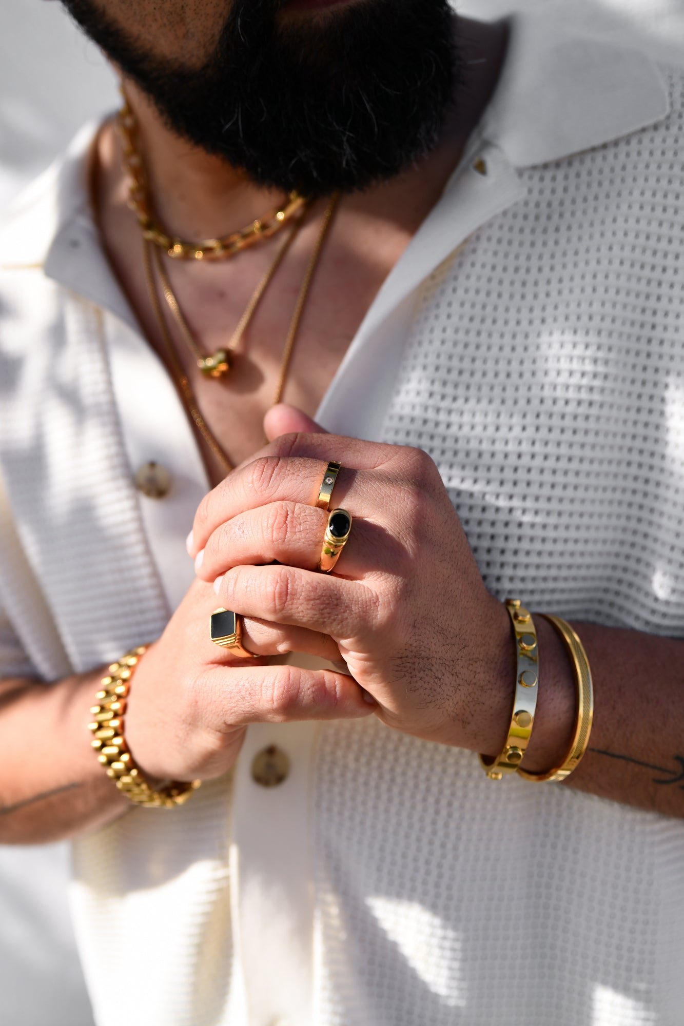 Crafted for the modern man who appreciates design with substance, the Sync Bracelet Gold offers a clean silhouette with confident detailing. Wear it solo as a statement piece or pair it with your favourite timepiece for an effortlessly elevated look.