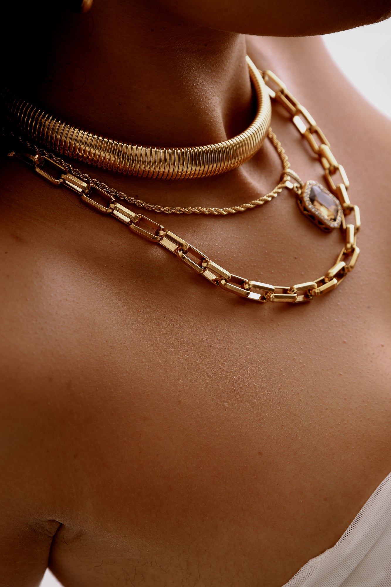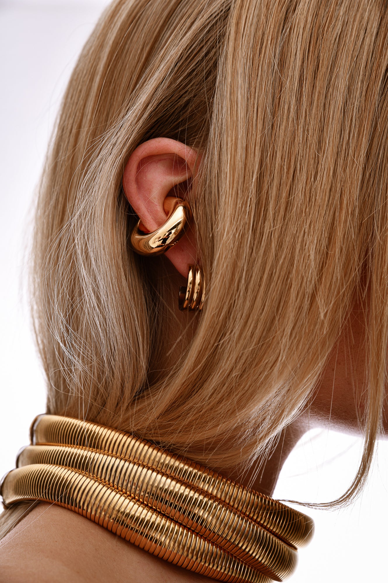 Crafted with 18K Premium Triple Plated Gold on Stainless Steel, this wide choker is designed to hug the neckline, creating a modern, luxurious statement that is ideal for layering or wearing on its own.