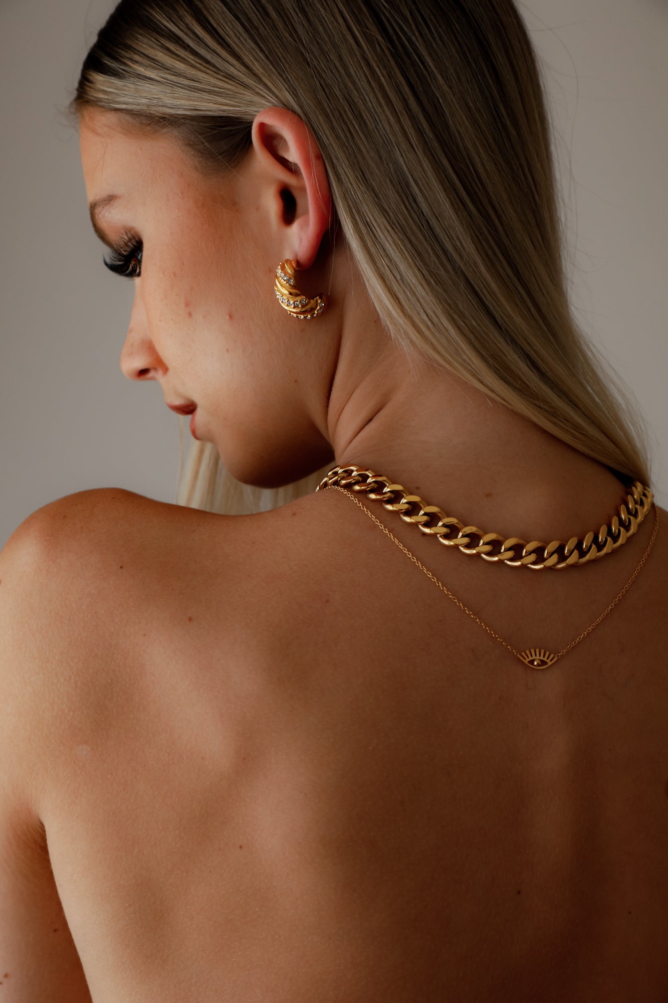 Experience the timeless beauty of the Queen Necklace, a delicate gold necklace that complements any outfit. This piece encompasses the classic chain style with premium 18K Gold Plating, offering a sophisticated and elegant look.