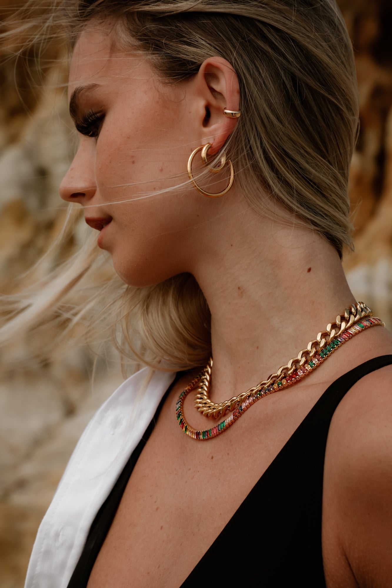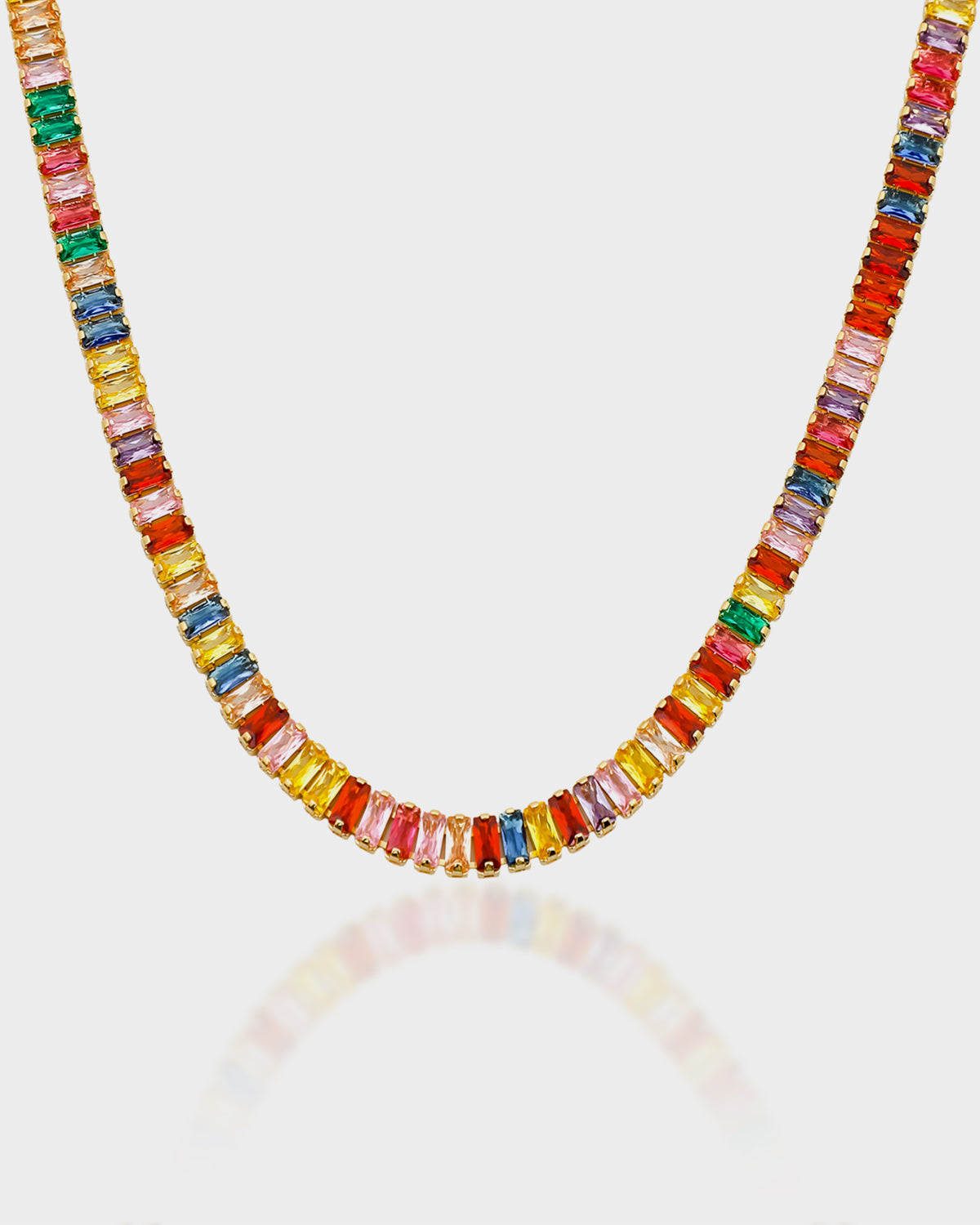 This necklace features Dazzling Zirconia Gemstones selected to create a mesmerizing rainbow effect. Perfect for every occasion, this limited edition piece gives you that rich, opulent look whether you're turning heads at a party or adding elegance to your everyday outfit.