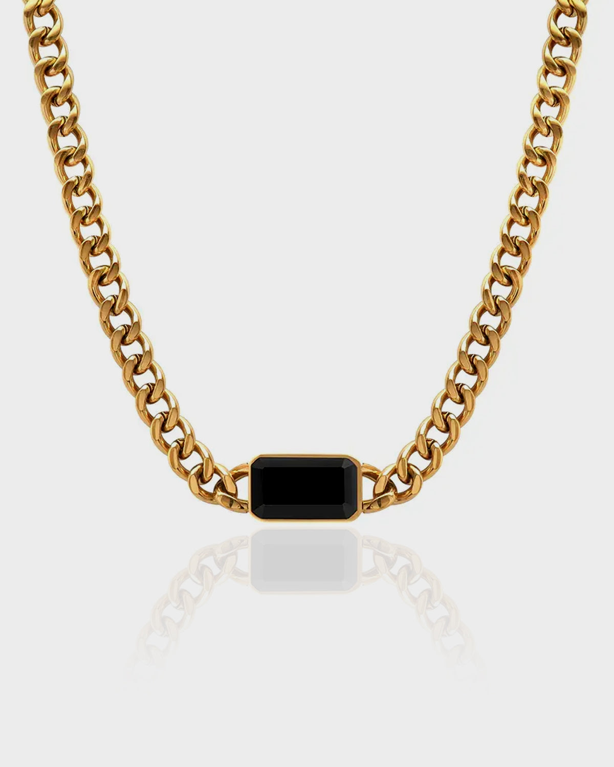 Putting an extra twist on simplicity, the gold-plated Venus Black Necklace features a show-stopping, sparkling rectangular black zirconia gemstone pendant.