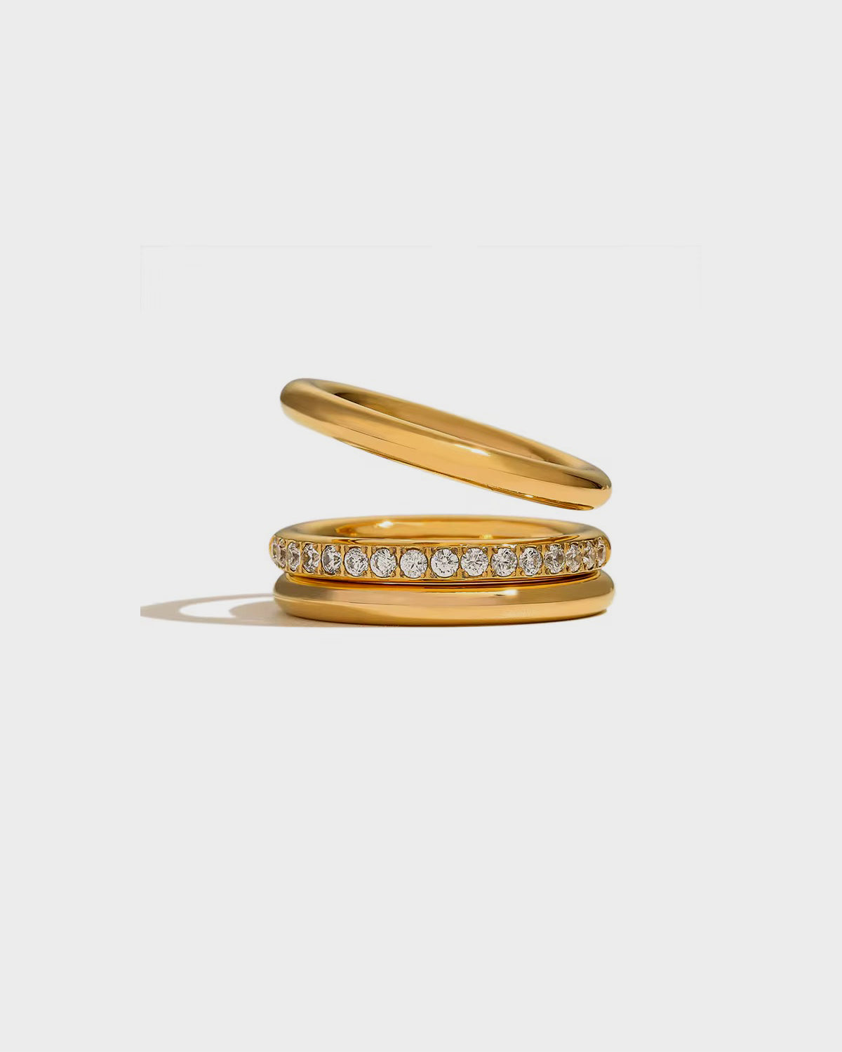 ✔ Two-Ring Stack: one plain band and one with Brilliant-Cut Cubic Zirconia